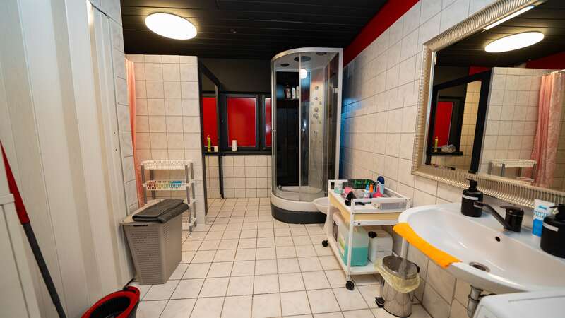Damen-Umkleideraum mit Duschen, Damen-Toiletten, Waschmaschine, Trockner, Aufenthaltsraum, Empfang, Nichtraucherbereich, Abschließbare Wertfächer, abschließbare Schränke, extra Gäste-Toilette